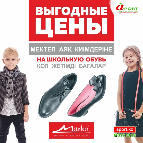 А вы готовы к школе? С 1 по 31-е августа в магазинах белорусской обуви Marko выгодные цены на школьную обувь! Marko — отличная обувь для отличников! Ждем вас за покупками на 1-м этаж молла Апорт (вход рядом с фонтаном «Яблоко»)