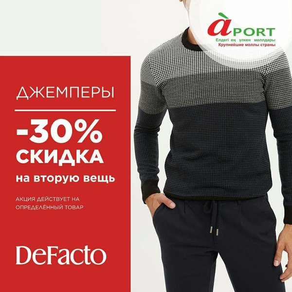 DeFacto-ға қош келдіңіз! Ерлер жемпірлеріне және әйелдерге арналған жемпірлермен туникаларға науқан басталды-екінші жемпір 30% жеңілдікпен. Сатып алудан ләззат алыңыз! ________________ Добро пожаловать в DeFacto! Акция на мужские, женские джемперы и туники: на каждый второй джемпер скидка -30%! Наслаждайтесь покупками!