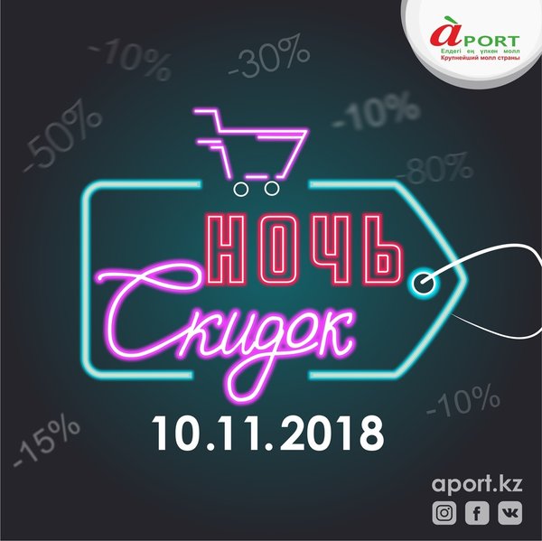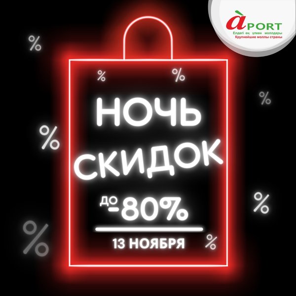 Друзья! Спешим Вас обрадовать — с 1 ноября в молле Апорт начинаются грандиозные ночные скидки до 80%! Специально для Вашего удобства скидки будут действовать не только в вечернее время, но и в течение всего дня! С любовью, ваш молл Апорт.