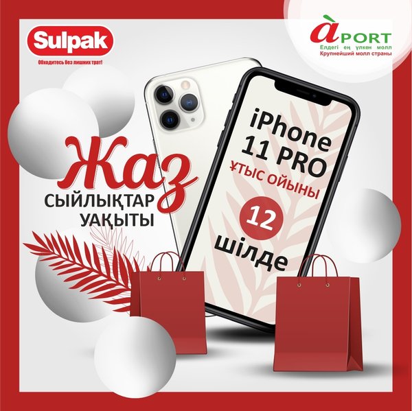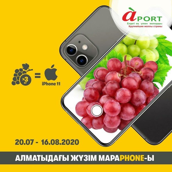 дар! Біз барлық қатысушыларға жеңіс тілейміз Толығырақ ақпаратты Сіздер біздің aport.kz сайтымыздан ала аласыздар. ________________________ Друзья, мы рады вам сообщить дату розыгрыша «Лето-время подарков»! Розыгрыш состоится 12 июля в 15:00. Успейте выполнить все условия и получить возможность выиграть новенький IPHONE 11 PRO. Кстати об условиях, они максимально просты: 1. Осуществить покупки в период с 29 мая по 12 июля 2020 года; 2. В течении 3 дней обменять фискальные чеки на купоны; 3. Опустить купоны в барабан, установленный на ресепшен; Вы можете продолжить участие в акции и увеличить шансы на победу! Мы желаем всем участникам победы Более подробную информацию вы сможете получить на нашем сайте — aport.kz!