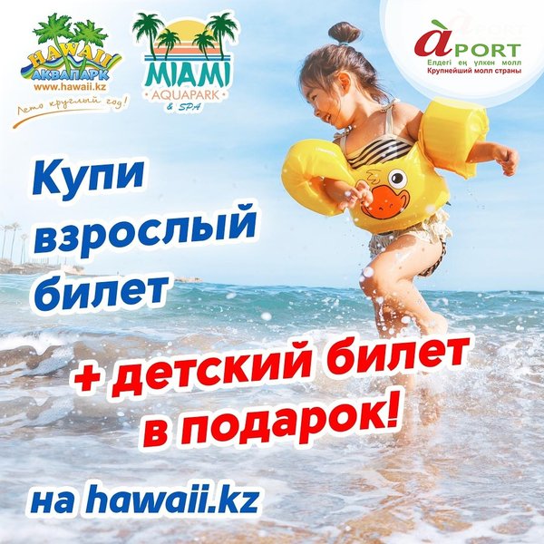 880 теңге орнына барлығы 6990 теңгеге (аквапарк, СПА, тамақ және СПА-қызметтер) — сатып алу үшін 2020 ж.31 мамырына дейін ұзартылды. «Барлығы қосылған» науқаны балаларға- 4990 тг 9020 орнына ⠀ * Билеттерді сатып алу үшін hawaii.kz сайтына өтіңіз немесе профилінің қақпағына басыңыз ⠀ * Билеттерді 2020 жылдың 31 мамырына дейін сатып алуға болады, ашылғаннан кейін карантинге дейінгі бағалар болады ⠀ •1 билет =1 кіруге лайықты ⠀ * Билеттерді кез келген күні 2020 жылдың 31 желтоқсанына дейін пайдалануға болады • ⠀ Сіздерге деген қамқорлықпен, Hawaii Аквапарк, Miami & Spa! ___ Супер предложение до 31 мая 2020 года! ⠀ Друзья, в связи с карантином — мы решили поддержать ваше желание развеяться, отдохнуть, покупаться и сделали хорошую скидку для наших гостей! -- Отдыхай в аквапарке за полцены полный день! ⠀ Только до 31 мая 2020 г покупай билеты на сайте hawaii.kz со скидкой 50% и приходи купаться после открытия и до 31 декабря 2020 г. ⠀ Детский билет — 2245 тенге вместо 4490 тенге Взрослый билет — 2900 тенге вместо 5890 тенге Вход в Miami SPA-центр — 1000 тенге вместо 2490 тенге ⠀ И акция «Всё включено» всего за 6990 тенге вместо 15880 тенге (аквапарк, спа, еда и спа-услуги) — для покупки продлена до 31 мая 2020 г. «Всё включено для детей» — 4990 тенге вместо 9020 тенге ⠀ •для покупки билетов переходите на сайт hawaii.kz или жмите на ссылку в шапке профиля, один билет-одно посещение ⠀ •Приобрести билеты со скидкой можно только до 31 мая 2020г, после открытия будут обычные цены, как до карантина. ⠀ •Билетами можно воспользоваться в любой день до 31 декабря 2020 г. ⠀ С заботой о вас, ваш Аквапарк Hawaii, Miami & Spa!