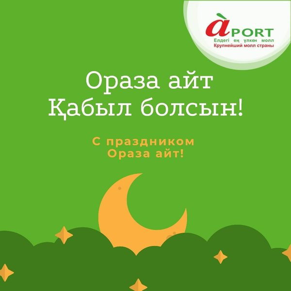 Апорт Моллы барлық қазақстандықтарды қасиетті Рамазан айының аяқталуымен және Ораза — айт мерекесінің басталуымен құттықтайды! Сіздердің жанұяларыңызға бақ-береке тілейміз!!! ⠀ __________________________________ ⠀ Молл Апорт поздравляет всех казахстанцев с окончанием священного месяца Рамадан и наступлением праздника Ораза- байрам! Мир вашим домам!