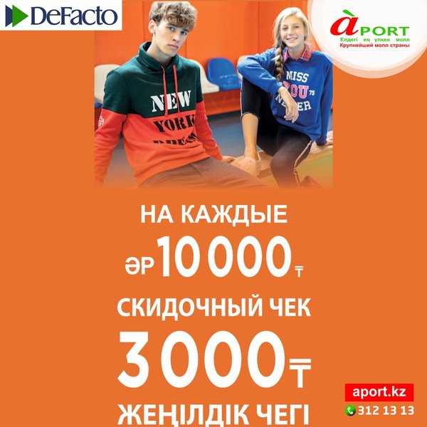 Новая акция от магазина DeFacto! Крупнейший молл страны Апорт ждет Вас!