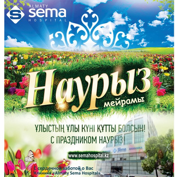 Құрметті достар! Сіздерді Ұлыстың Ұлы күні Наурыз мерекемізбен құттықтаймыз! Наурыз амандық, қуаныш, жақсылық дастарханымызға құт-береке әкелсін!Мықты денсаулық пен ұзақ өмір, жан ұяңызға тыныштық және бақыт тілейміз! Уважаемые друзья! Мы поздравляем Вас со знаменательным праздником Наурыз. Пусть Наурыз принесет нашим семьям благополучие, радость и много доброты!Желаем крепкого здоровья, долгих лет жизни и счастья вашим семьям! С сердечной заботой о Вас клиника «Almaty Sema Hospital» г.Алматы, ул.Наурызбай батыр, 31 (уг.ул.Гоголя) тел: 399 6… — Читать дальше