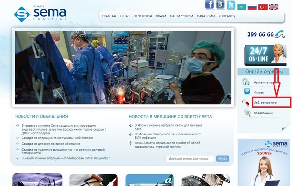 Құрметті біздің емделушілер! Бүгінгі күннен бастап лаборатория нәтижелерін алу үшін емханада күтудің немесе емханаға қайта келудің қажеті жоқ. semahospital.kz сайтындағы Лаб. результаты деген бөлімінен жасалған лабораторияларыңыздың нәтижелерін келесі белгілерді енгізу арқылы көре аласыздар: