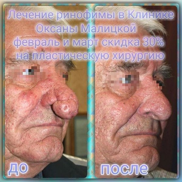 Ринофима – хроническое заболевание кожи носа, характеризующееся гипертрофией всех ее элементов, увеличением и обезображиванием носа. Различают фиброзно-ангиоэктатическую и железистую (бугристую) формы ринофимы. Известен способ коррекции ринофимы путем дермабразии. Заболевание ринофима чаще встречается у мужчин, но в нашу Клинику обращаются и женщины. Хиурурги Клиники Оксаны Малицкой обладают инновационным патентом «Способ лечения ринофимы». В связи с 45-летним Юбилеем врачебно-косметологической Клиники Оксаны Малицкой – с 1 февраля 2017 г. по 31… — Читать дальше