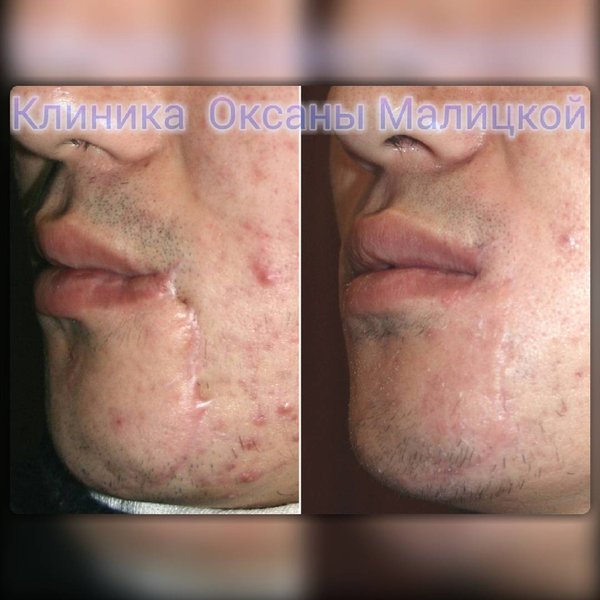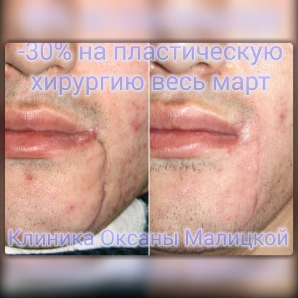 Рубцовая деформация левого угла рта и подбородка. Этот юноша получил травму при нападении. Была проведена операция по коррекции рубца подбородка и устранению деформации левого угла рта. Пластический хирург, кандидат медицинских наук Ирина Юрьевна Малицкая. Запись на консультацию по телефонам: тел.) whatsapp)