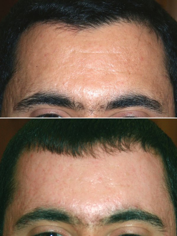 Шлифование лба и височных областей. Операция проводится под местной анестезией или под наркозом- по выбору пациента.