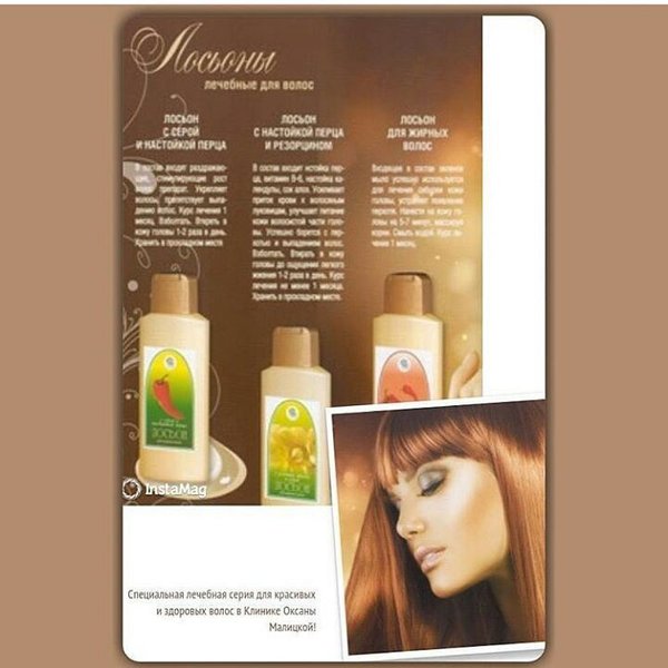 Лечебные лосьоны, масла и маски для любого типа волос от Клиники Оксаны Малицкой Только в нашей Аптеке вы найдёте полностью натуральные, созданные по специальным рецептам Клиники средства для волос. Используя наши средства по уходу за волосами, вы можете быть уверены, что получаете эффективный, наисвежайший продукт, биологическая активность которого достигает максимальных результатов!