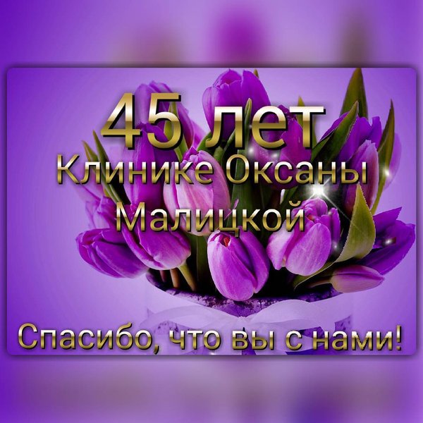Дорогие наши пациенты! Сегодня Клиника Оксаны Малицкой празднует свой 45-летний Юбилей! Спасибо, что все эти годы вы остаетесь нашими верными друзьями!