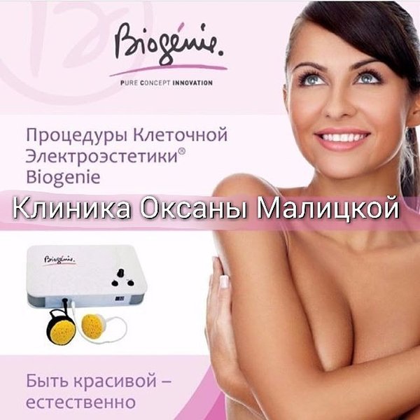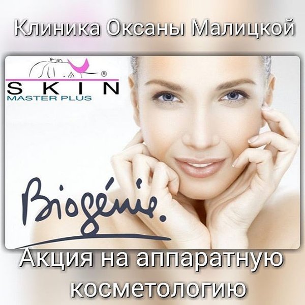 ками Biogenie International) включает в себя традиционные французские эстетические лимфодренажные техники массажа руками и манипулами аппарата, которые улучшают циркуляцию лимфы и обеспечивают детоксикацию. Устранение токсинов позволяет клеткам кожи лучше насыщаться кислородом и легче восстанавливаться, а также в полной мере усваивать каждый активный ингредиент из формулы профессиональных косметических средств Biogenie, которые используют в конце процедуры. Весь этот цикл обеспечивает оптимальный процесс регенерации кожи и лечение различных дерматологических проблем.Процедуры Биожени показаны всем женщинам и мужчинам любого возраста, поскольку аппараты и косметика Биожени помогают решить целый комплекс проблем с кожей, причем не только возрастных. Это и сосудистые проблемы: купероз, телеангиэктазии, розацеа вне острой стадии. Снижает клеточная эстетика и выраженность симптомов акне (применяют также вне острой стадии) и постакне. Ну и конечно же, Биожени смягчает или устраняет возрастные изменения кожи – дряблость, неглубокие морщины, мешки под глазами и отечность. за счет восстановления идеального баланса энергетического потенциала клеток, эти процедуры обеспечивают нехирургическую подтяжку лица – техника фактически работает напрямую с клетками кожи. Биожени также более четко определяет контуры лица, помогая восстановить более молодой «интерфейс». Уважаемые пациенты! В связи с 45-летним Юбилеем врачебно-косметологической Клиники Оксаны Малицкой – с 1 февраля 2017 г. по 31 марта 2017 г. вас ждут ЕЖЕДНЕВНЫЕ скидки! Дополнительно к уже идущим акциям, мы дарим скидку на проведение АНТИВОЗРАСТНЫХ процедур! При единовременной оплате 1 курса на аппаратах Biogenie и SKIN MASTER (1 курс — 5 процедур) — 6-ая процедура в подарок! Дорогие женщины, не упустите возможность перед самым женским и самым нежным праздником — 8 марта побаловать свою кожу! Чтобы достичь стойкого эффекта требуется пройти как минимум 4—5 сеансов, длительность и режим которых определяет косметолог в индивидуальном порядке. Впрочем, одноразовый уход поможет блеснуть красотой на важном мероприятии, если провести его накануне за день-два. Акция действует, при условии единовременной оплаты 1 курса и прохождении курса в течении 1-го месяца. Запись по телефонам: тел.)