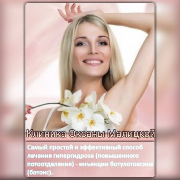 рах. Поэтому при первых симптомах лучше сразу начать лечение. В @clinicamalitskoy применяется самый эффективный способ лечения гипергидроза на сегодняшний день — инъекции ботокса. В лечении гипергидроза ботокс блокирует рецепторы потовых желез, создавая барьер между ними и нейротоксинами. Лечение гипергидроза ботоксом обладает рядом плюсов, которые выделяют его среди остальных: не нужна анастезия (проводится в обычных амбулаторных условиях); не вредит здоровью (это вещество безопасно для здорового человека); отсутствие долгой реабилитации; высокая эффективность (в большинстве случаев такое лечение навсегда избавляет от проблемы); отсутствие хирургического вмешательства и его последствий (вам не грозят инфекции в ране, шрамы и т.п.); малые ограничения до и после инъекции (вы почти не измените привычный порядок своей жизни. Подробности по телефонам: тел.) тел./факс)