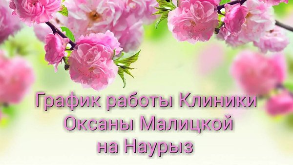 Уважаемые дамы и господа! Коллектив Клиники Оксаны Малицкой поздравляет вас с наступающим праздником Наурыз! Мы рады сообщить вам, что в праздничные дни, с 20 марта 2017 года по 23 марта 2017 года наша клиника будет работать по обычному расписанию, с 9.00 до 19.00. Предварительная запись по телефонам: тел.). Все скидки на процедуры и пластическую хирургию действуют и в праздничные дни, успейте записаться! Ждём вас!