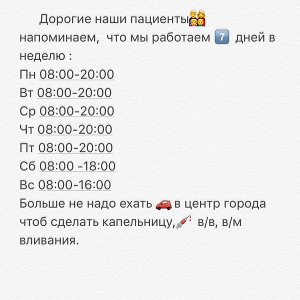 Спешим сообщить, что в нашем медицинском центре вы можете сдать любой анализ, начиная с ОАК заканчивая Бактериологическими исследованиями, и еще деткам забор делаем из капиллярной кровь т.е из пальчика, а не венозную! Так что больше не надо ездить по городу, искать места, где можно сдать анализ крови, мочи.... и т.д. ВАЖНОРезультаты можно получить в тот же день после обеда!
