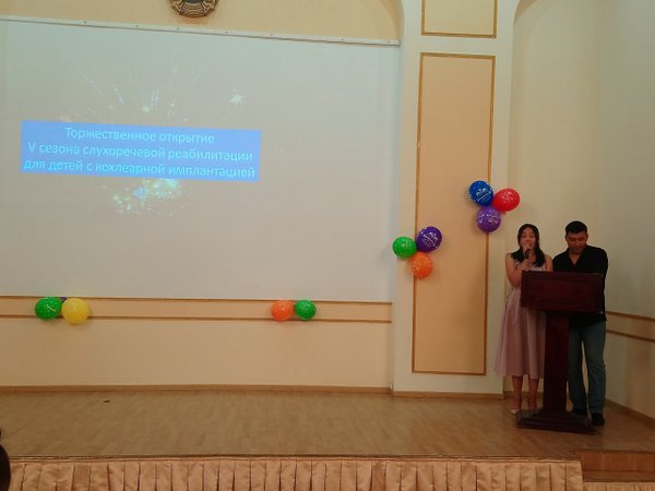 тын болады. Оған КИ орнатылған балалардың есту арқылы елестету, есту арқылы қабылдау, толыққанды әлеуметтік ортаға ену үшін қажетті ауызша сөйлеу қабілеттерін дамыта отырып, жаттығуларды және сабақтарды ашық есік түрінде өткізу негізінде балалардың ата-аналарына тәжірибе арқылы бүлдіршіндермен үй жағдайында жаттығуларды дұрыс өткізуге үйретіп, олардың сөйлеу процессорларын күйге келтіру және оториноларинголог-дәрігердің (ЛОР) тексеріс өткізіп, ата-аналарға кеңес беруі ұйымдастырылған. Мамандар оңалту жұмыстарын мемлекеттік және орыс тілдерінде өткізеді. Тәуліктік оңалтудың ашылу салтанатында «Әлеуметтік оңалтуды дамытудың ғылыми-тәжірибелік орталығының» Бас директорының орынбасары Салтанат Смайлова, Ғылыми-ұйымдастыру бөлімінің басшысы және де осы оңалту жұмыстарының кураторы Анжела Саякова, Медициналық-оңалту Департаментінің Директоры Светлана Шубина қатысты. Залға жиналған балаларға, ата-аналарға, педагог мамандарға және де Орталық жетекшілігіне балалардың өздері дайындаған шағын концерттік бағдарлама ұсынылды. Олар өздерін ән айту және би билеу өнерлерін көрсетіп, көрермендердің көңілінен шықты. Тәуліктік оңалту жұмыстарының биылғы 4 маусымында 29 бала оңалтудан өтетін болады. Оларға әр түрлі логикалық дамыту ойындары, музыкалық және қолөнер шеберлік байқаулары өткізіліп, 4 рет тегін тамақтандыру және ата-аналарына оңалту барысында туындаған сұрақтар бойынша барлық мамандар кеңес беретін болады. ҚР ЕХӘҚМ «Әлеуметтік оңалтуды дамытудың ғылыми-тәжірибелік орталығының» Баспасөз қызметі Открытие 4 сезона круглосуточной слухоречевой реабилитации 2019 9 июля в отель-санаторий «Altyn Kargaly» состоялось открытие 4 сезона круглосуточной слухоречевой реабилитации детей после КИ. По государственному заказу Министерства труда и социальной защиты населения РК, на протяжении 15 дней специалисты «Научно-практического центра развития социальной реабилитации» на бесплатной основе будут помогать детям с проблемами слуха и речи и сопровождающим их родителям организовывая медико-психолого-педагогическую работу. К таким работам можно отнести формирование слухового представления у детей с КИ, обучение формированию или продолжению дальнейшего развития слухового восприятия, устной речи, необходимых для полноценной социальной интеграции, благодаря открытой системе занятий в присутствии родителей обучать их развитию у ребенка слуха, речи в обычных бытовых ситуациях, проведение настройки речевого процессора КИ и организован осмотр и консультация врача-оториноларинголога (ЛОР). Специалисты нашего Центра и приглашенные сурдопедагоги и логопеды ведут круглосуточную слухоречевую реабилитацию на двух языках – государственном и русском. На открытии присутствовали руководители «Научно-практического центра развития социальной реабилитации» в лице заместителя Генерального директора Салтанат Смайловой, начальника Организационно-научного отдела и куратора слухоречевой реабилитации Анжелы Саяковой и Директор Департамента Медико-реабилитационного Светлана Шубина. Для присутствовавших в зале зрителей, детей, родителей, педагогов и руководства Центра был показан мини-концерт с участием самих детей, которые, показали свои таланты в пении и танцах. Для 29 детей которые начали проходить реабилитацию предусмотрен
