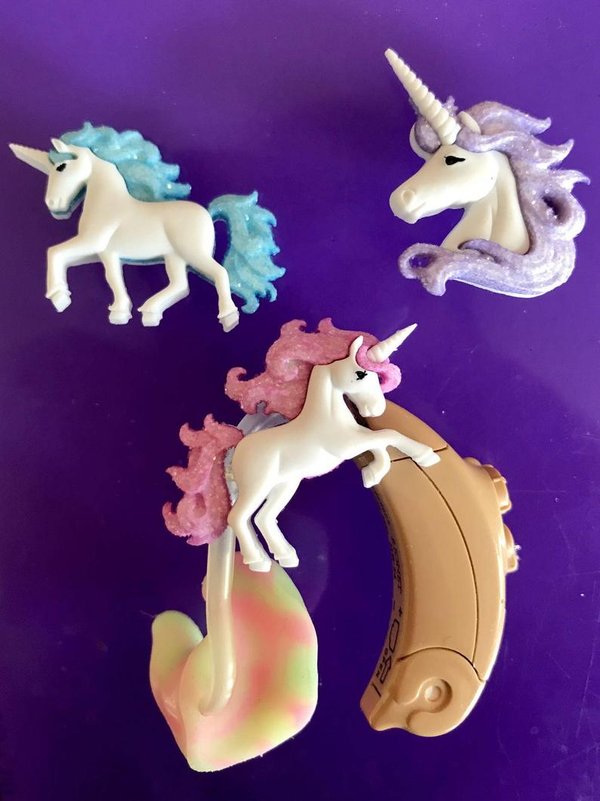 На сегодняшний день существуют множество способов украсить наружный аппарат кохлеарного импланта. Среди них специально разработанные наклейки, брелоки для украшения слуховых аппаратов и кохлеарных имплантов. По словам детских психологов кроме эстетических особенностей такие наклейки и аксессуары придают детям уверенность перед своими сверстниками. Но прежде, чем дизайнить слуховой аппарат или кохлеарный имплант своего ребенка убедитесь, что все части корпуса, которые должны оставаться открытыми, такие как дополнительные микрофонные порты или контакты прямого аудиовхода не закрывались. Нельзя наносить краски или лаки для ногтей непосредственно на корпус. Рекомендуем перед украшением проконсультироваться со специалистом аудиологом. Самое главное помните: украшения наружной части КИ не должны препятствовать работе микрофона, и если кохлеарный имплант был предоставлен за счет государственных средств соблюдайте условия действия гарантии.