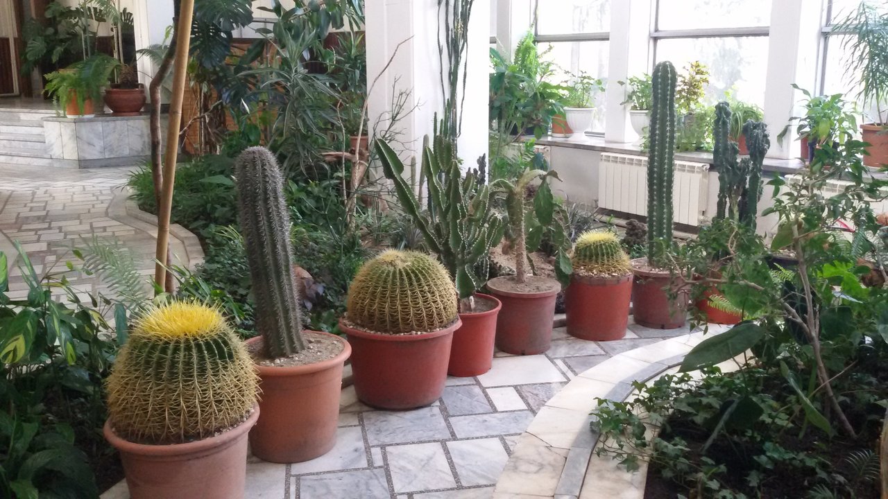 С любо вью работают люди, ухаживающие за зимним садом и облагораживающие территорию. Такая красота тоже лечит.