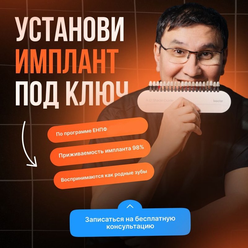 ✔️ У нас работает лучший имплантолог Казахстана с опытом более 30 лет