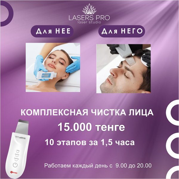 • Ревитализация • Пилинг • Мгновенный результат • Может использоваться круглый год • Не вызывает повышенной фоточувствительности • Предусмотрена скидка на полный курс пилингов — 20%!. «Lasers Pro» Студия лазерной эпиляции. Адрес г.Алматы ул. Наурызбай Батыра 47 (между ул. Айтеке би/ ул. Гоголя) Телефоны для записи+whatsapp) +. Адрес г.Алматы ул. Жамбыла, 169 (на пересечении ул. Жамбыла и ул. Манаса) Телефоны для записи whatsapp).