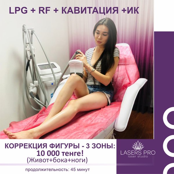 Включает услуги: LPG массаж Вакуумно-роликовый массаж РФ лифтинг Кавитация СТОИМОСТЬ: 58 000 тенге 2. Абонемент «Все включено Medium» на 15 посещений LPG массаж Вакуумно-роликовый массаж РФ лифтинг Кавитация Комплексная чистка лица 10 этапная СТОИМОСТЬ: 75 000 тенге 3. Абонемент «Все включено Maxi» на 30 посещений LPG массаж Вакуумно-роликовый массаж РФ лифтинг Кавитация Комплексная чистка лица 10 этапная СТОИМОСТЬ: 110 000 тенге КОМУ ПОКАЗАНЫ НАШИ УСЛУГИ? обладателям лишнего веса до 30 кг, желающим значительно улучшить состояние кожи, мамам останавливающимся после родов, обладательницам целлюлита от I до IV стадии, желающим избавиться от локальных жировых отложений, стремящимся вернуть былую форму, но кому противопоказаны интенсивные тренировки в спортзале. Какой абонемент подходит тебе!? -------------------------— «Lasers Pro» Студия лазерной эпиляции -------------------------------------— Адрес г.Алматы ул. Наурызбай Батыра 47 (между ул. Айтеке би/ ул. Гоголя) Телефоны для записи +whatsapp) + ---------------------------------------------— Адрес г.Алматы ул. Жамбыла, 169 (на пересечении ул. Жамбыла и ул. Манаса) Телефоны для записи + + + whatsapp) ---------------------------------------------— Режим работы: Пн, Вт, Ср, Чт, Пт, Сб, Вс — с 09:00 до 21:00