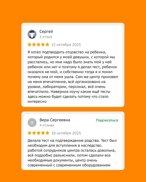 Для нас нет ничего важнее, чем обратная связь от наших клиентов. ⠀ Именно ваши отзывы – честная и самая ценная оценка нашей работы. Собрали несколько реальных историй людей, которые прошли ДНК‑исследования в Центре ДТЛ. ⠀ Как тесты помогают прояснить сложные ситуации, снять сомнения и получить уверенность в завтрашнем дне – делимся в галерее → ⠀ — ⠀ Остались вопросы? Можно задать их в комментариях к публикации или написать в ЛС! ⠀ Больше подробностей о ДНК-исследованиях в Центре «ДТЛ» – на нашем сайте: