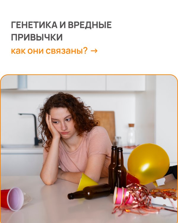 ей есть предрасположенность к зависимости от никотина и других вредных привычек. Хотите узнать, как ваша генетика влияет на привычки и здоровье? Пройдите наш тест «Мои гены: Wellness»! Тест помогает определить: Как ваш организм воспринимает никотин Какие психологические зависимости вам свойственны Ваши потребности в витаминах и многое другое Пишите нам в Direct, чтобы узнать больше и пройти тест на генетическую информацию, которая поможет вам вести более здоровый образ жизни!