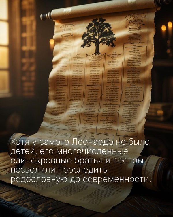 15 ныне живущих прямых потомков по мужской линии Генетический анализ шестерых мужчин подтвердил сохранение характерных маркеров Y-хромосомы на протяжении 15 поколений. Археологические ключи к разгадке Особое внимание учёных приковано к фамильному склепу в церкви Санта-Кроче (г. Винчи), где покоятся: Дедушка Антонио Дядя Франческо Сводные братья Леонардо Совпадение ДНК останков с современными потомками позволит: Верифицировать исторические документы Провести анализ биологических следов на рукописях Изучить возможные генетические особенности гения Исследователи надеются узнать: Генетические основы невероятных творческих способностей Леонардо Причины уникальной остроты зрения Состояние здоровья и обстоятельства смерти Происхождение матери «Современные технологии позволяют извлечь ДНК даже из микроскопических следов на страницах рукописей», — отмечает Джесси Аусубель из Университета Рокфеллера.