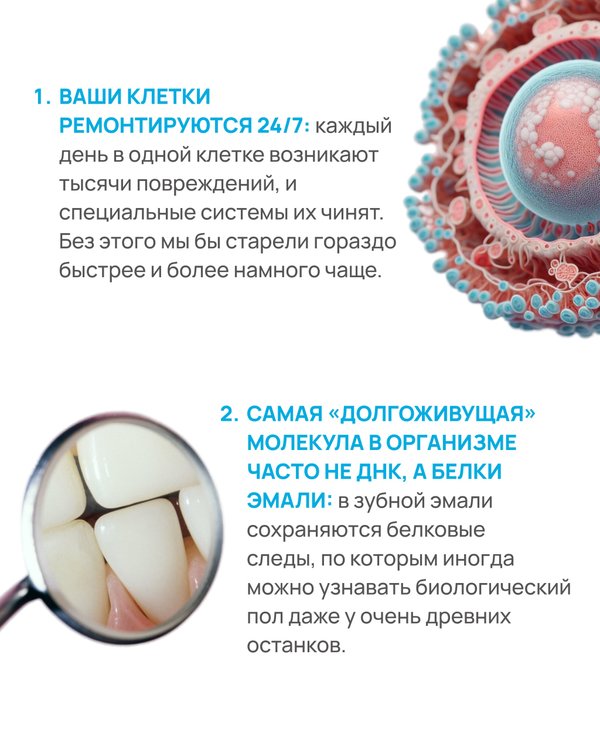 Самая долгоживущая молекула находится в полости рта? Есть ген, который сделает нас неуязвимыми к кишечным инфекциям? Проблемы с сердцем передаются по наследству? Продолжаем удивляться сами и удивлять наших подписчиков Собрали новую подборку из малоизвестных и необычных фактов о человеческой генетике, которые многие из вас могли не знать! → — Остались вопросы? Можно задать их в комментариях к публикации или написать в ЛС! Больше подробностей о ДНК-исследованиях в Центре «ДТЛ» – на нашем сайте: