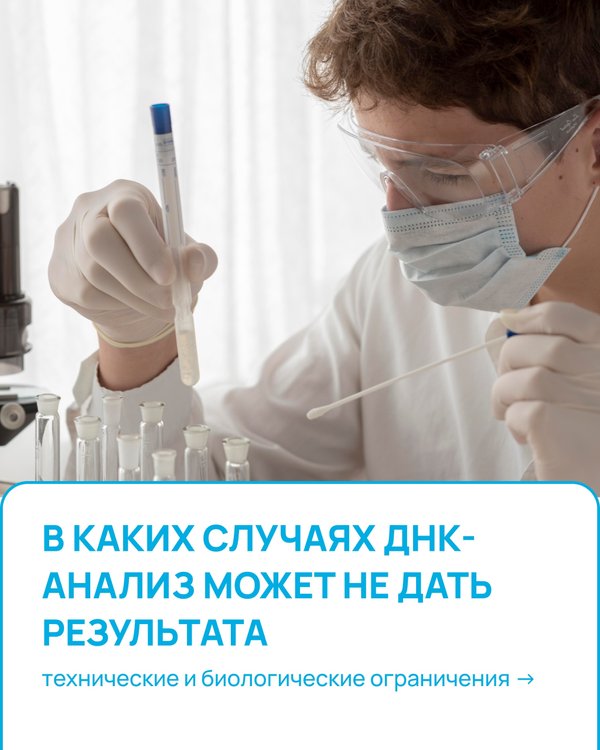 Современные генетические тесты обладают точностью до 99,99%, однако лабораторный процесс подчиняется строгим законам биохимии. ⠀ Существуют объективные факторы – от нарушений при заборе материала до редких биологических феноменов – которые могут помешать получению корректного результата или сделать его невозможным. ⠀ Разбираем 5 основных ситуаций, когда стандартный алгоритм ДНК-тестирования может столкнуться с трудностями – листайте галерею → ⠀ ー ⠀ Остались вопросы? Можно задать их в комментариях к публикации или написать в ЛС! ⠀ Больше подробн… — Читать дальше
