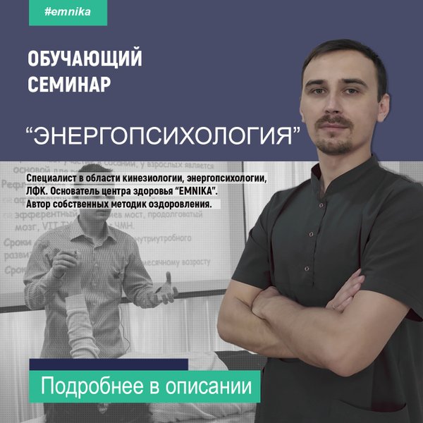 VK INSTA — Компания «EMNIKA» — это кинезиотерапия, лечебный массаж, #кинезиология, энергопсихология и ОФК на базе «детских примитивных рефлексов». Проводим курсы, семинары, тренинги различных направлений. для спортсменов, инструкторов, психологов, специалистов ЛФК, реабилитологов. Также ведём прием для людей с различными болевыми синдромами (#боли в шее, спине), при сколиозе, остеохондрозе, межпозвонковых грыжах, протрузиях, с проблемами органов ЖКТ. Все приемы основываются на методах кинезиологии, неврологии, остеопатии, акупунктуры, психологии, био-энергетики.