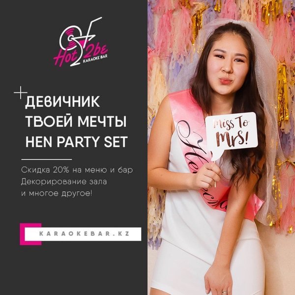 Девичник?! Проведите его в компании лучших подружек в нашем караоке!!! Скидка на кухню и бар Украшение зала Лучший сервис Мы ждём вас!!!