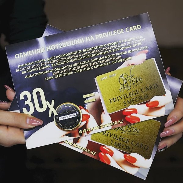 Вы можете обменять Hot2be'shki «Удача впереди» на PRIVILEGE CARD. С помощью PRIVILEGE CARD вы сможете наслаждаться общим залом или кабинками без оплаты входа с воскресенья по четверг включительно!…