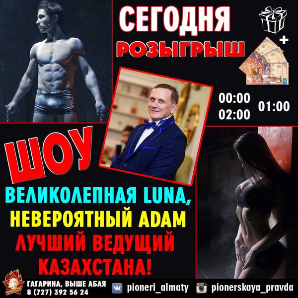 Ждем всех пионеров. Девушкам до 00:00 часов вход свободный. Принимаем каспи ред.