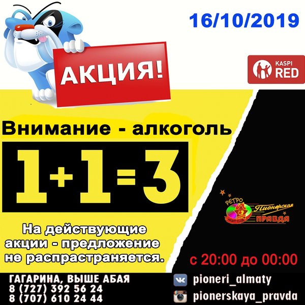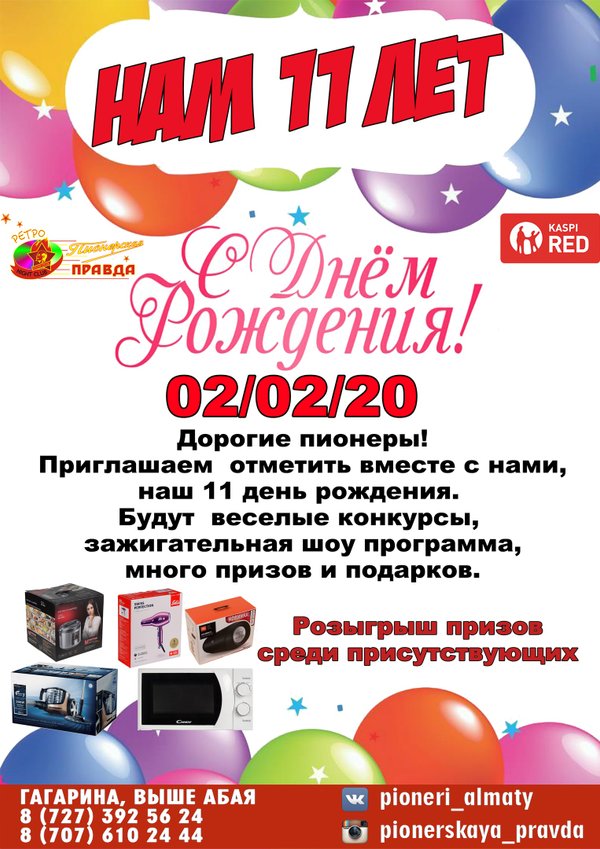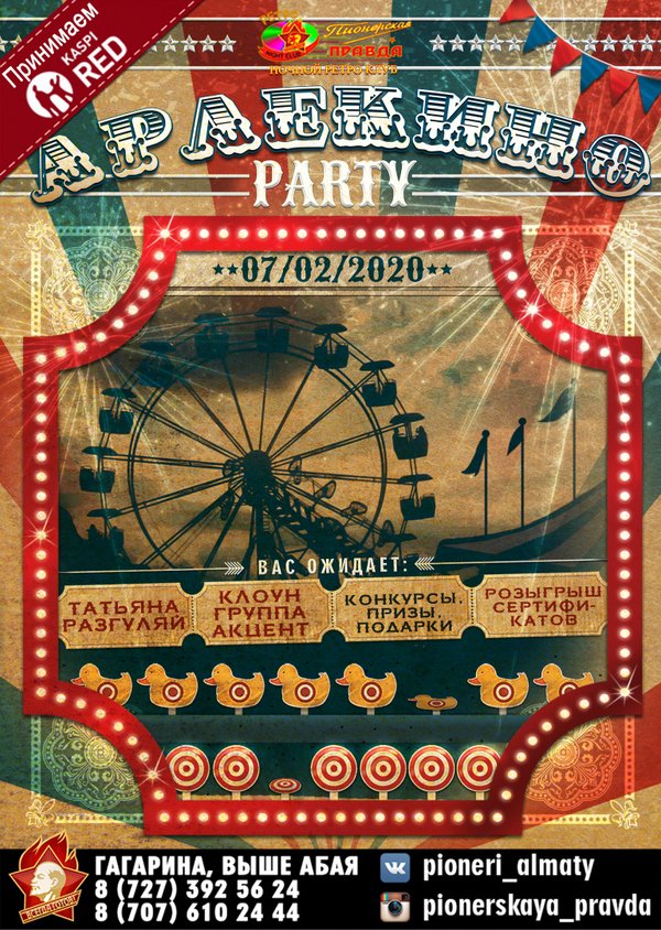 Ждем всех пионеров. Вход 2000тг. Принимаем каспи ред.