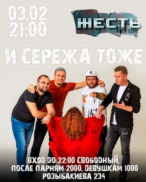29.07.22. 21:00 Рок клуб «ЖЕСТЬ» #trebutshow «Ляпис Трубецкой \ Звери» На сцене: @cover_drive_kz #dj DJ FAD Петр Оборзевский 21:00 – 22:00 #freeentrance 22:00 – 04:00 Мужчины – 2 000 kzt 21:00 – 04:00 Девушки заходят бесплатно _________ 30.07.22. 21:00 Рок клуб «ЖЕСТЬ» АУКЦИОН В ЖЕСТИ Лот#1 Бухлишко Лот#2 Мерч Лот#3 Клубная карта На сцене: Tommy Chong #dj DJ FAD Петр Оборзевский 21:00 – 23:00 #freeentrance 23:00 – 04:00 Мужчины – 2 000 kzt 21:00 – 04:00 Девушки заходят бесплатно