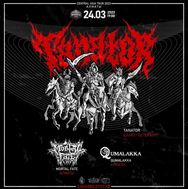 В марте метал-колесница TANATOR из Петербурга с грохотом и шумом пронесётся по Казахстану и Кыргызстану. После туров по Европе и Мексике музыканты расширяют географию поездок и отправляются вглубь Центральной Азии. При поддержке местных команд группа даст 4 громких выступления на стыке блэка и трэша, познакомится с локальной публикой и проверит её на прочность у сцены. Концерт поддержат алматинские groove легенды QUMALAKKA и молодая кровь местного андеграунда MORTAL FATE 24 марта 2023 Клуб «Жесть» ул. Розыбакиева 234, Алматы Двери 19:00 Билеты:… — Читать дальше