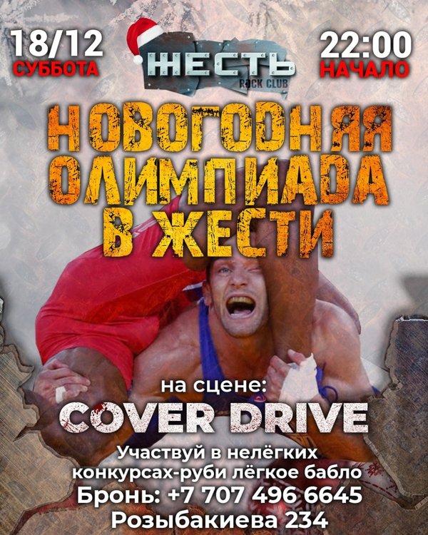 17 декабря, 21:00 Ⓜ️TRIBUTE SHOWⓂ️ Marilyn Manson На сцене: Flash Drop Вход до 22:00 свободный, после Парням — 2000Т, девушкам свободный 18 декабря, 22:00 Новогодняя олимпиада в Жести! Участвуй в нелёгких конкурсах — руби лёгкое бабло На сцене: Cover Drive Вход до 23:00 свободный, после Парням — 2000Т, девушкам свободный МС Роман Лазуров Strip GoGo DJ Rus Розыбакиева 234 Бронь: