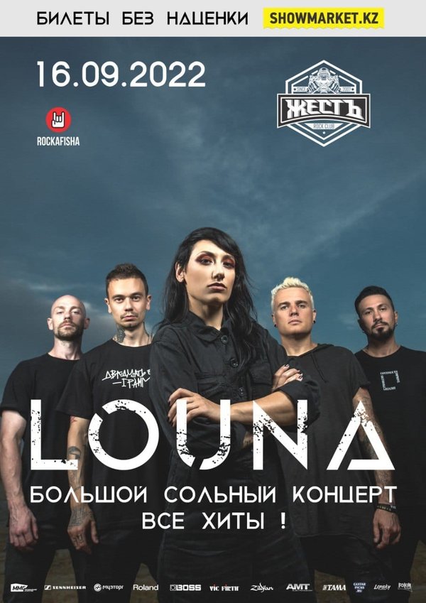 16 сентября группа LOUNA выступит с большим сольным концертом в Алматы в клубе «Жесть»! LOUNA сыграют все самые главные хиты, накопленные в творческом багаже команды за свою музыкальную историю. А слушателей, помимо известных и любимых песен, непременно ждут фирменный драйв, энергетика и мощный заряд эмоций! Ждем вас 16 сентября на концерте LOUNA в клубе «Жесть»! Начало в 20:00 Цена билетов до 1 сентября 12000 тг, далее повышение.
