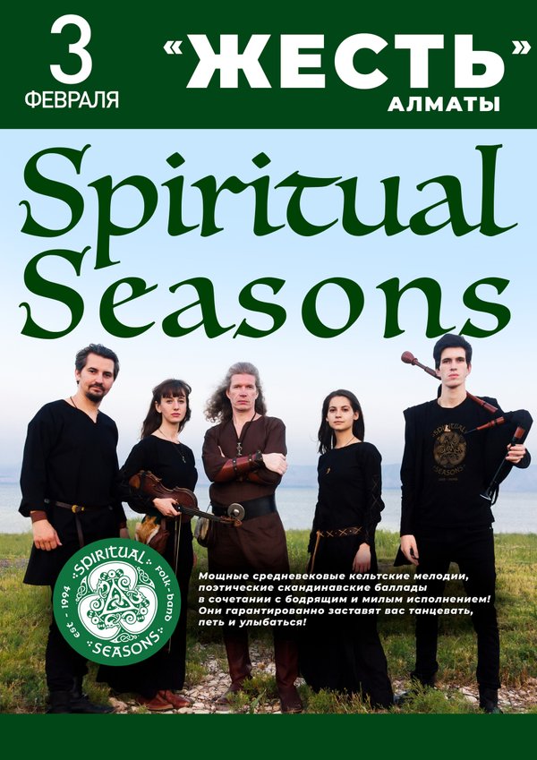 29.02 | Spiritual Seasons |Алматы |Клуб Жесть (27.12.2023): Друзья! После небольшого перерыва, фолк-группа Spiritual Seasons, возвращается в Алма-Ату, чтобы порадовать вас порцией энергичной и драйвовой фолк-музыки и сыграть обновленную программу!!! Билеты онлайн Вас ждут новые мелодии и песни, которые еще ни разу не звучали в нашем городе:) а хорошо известные мелодии приобретут новое, свежее звучание, в связи с тем, что группа выступит обновленным составом и с обновленной программой. Название «Spiritual Seasons» знакомо всем, мало-мальски инте… — Читать дальше