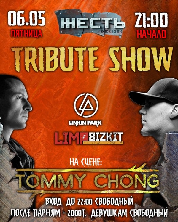 Tribute show Limp bizkit Привет Жестянщик! Продолжаем тему Tribute show в нашем клубе и на этот раз поднимем пласт направлений Rap metal, ну конечно же это они, рок -кумиры наших покооений Limp Bizkit. Там где Фред Дерст, всегда веселье и куча эпатажа. На этот раз творчество этой команды нам представят- The Monkeys! А так же в этот вечер: МС Миха Rock DJs Strip GoGo Вход парням до 22.00 свободный, после 2000т, девушкам вход свободный & welcome drink Бронь столов по ссылке в шапке профиля Клубные карты действительны