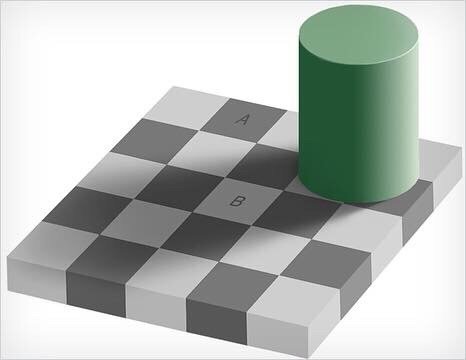 Иллюзия с тенью ⠀ ️Наверное, многим уже известна эта иллюзия, где от тела на шахматную доску падает тень, и две клетки, находящиеся вне тени(А) и в ее пределах(В), выглядят разного цвета — темная и светлая. Но на самом деле они оказываются одинакового цвета. Эдвард Адельсон в 1995 году с помощью этой иллюзии показал людям, как зрительная система человека воспринимает тень. При попытке определить цвет поверхности мозг учитывает, что поверхность находится в тени, и автоматически подает сигнал, что она должна быть воспроизведена как более светла… — Читать дальше