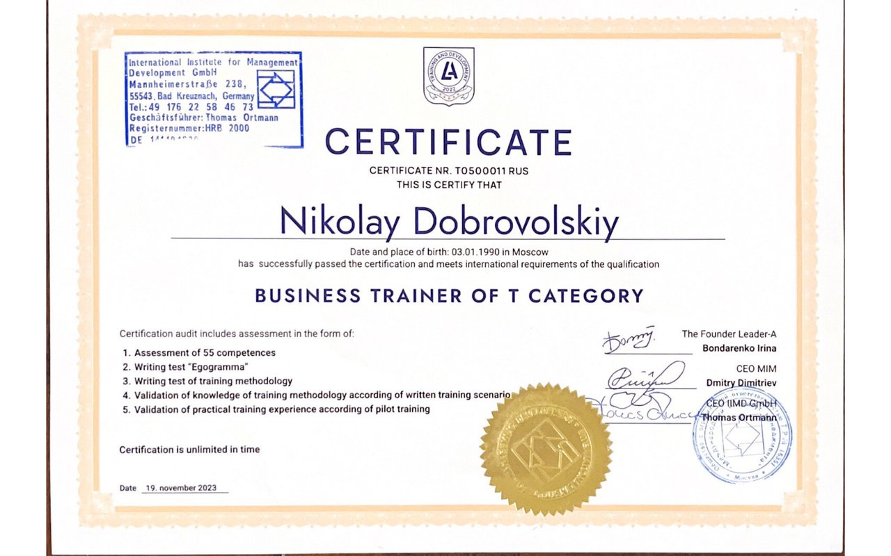 бизнес-тренер14 лет опыта в личных продажах в В2В и В2С. 159 онлайн модулей, 58 живых тренингов, 226 личных консультаций в 2023 г. Постоянные клиенты: GROHE, Рахат, BI Group, Mary Kay и др. Преподаватель ASPANDAU, Moscow City Business School, бизнес-инкубатора Международной Школы Экономики КазГЮУ. Мотивационный спикер и сертифицированный бизнес-тренер, эксперт в области публичных выступлений и продаж