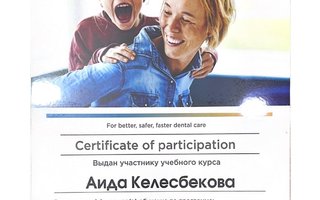 2022 — «Diagnostics, correct fixation, fixation planning for various clinical cases errors, issues of positioning and aesthetics», организатор BB Clinic, лектор Сагимбаева Камила г. Алматы;