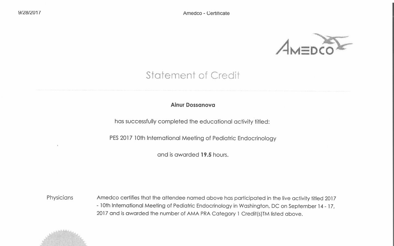- Есть ли у Досановой Айнур Касимбековны требуемые сертификаты?