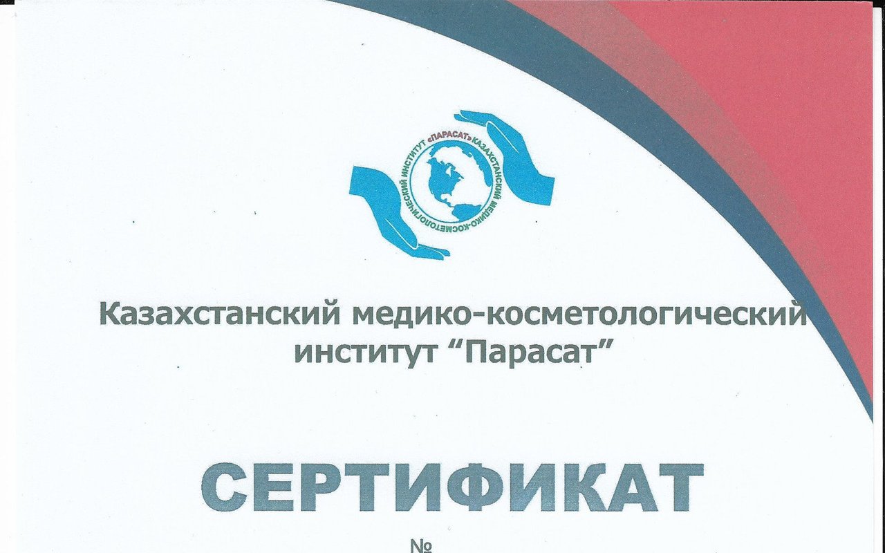 2014 г. - Казахский Национальный Медицинский Университет им. С.Д. Асфендиярова; 2015 г. - Интернатура в КазНМУ им. С.Д. Асфендиярова по специальности "Стоматология"