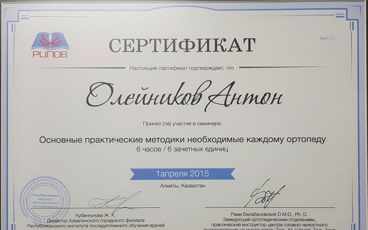 Антон Александрович владеет современными методами сложного протезирования: безметалловые конструкции, микропротезирование, съемные и условно съемные протезы, протезирование на имплантатах, безинвазивные керамичекие виниры, комплексное планирование сложных клинических случаев