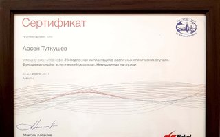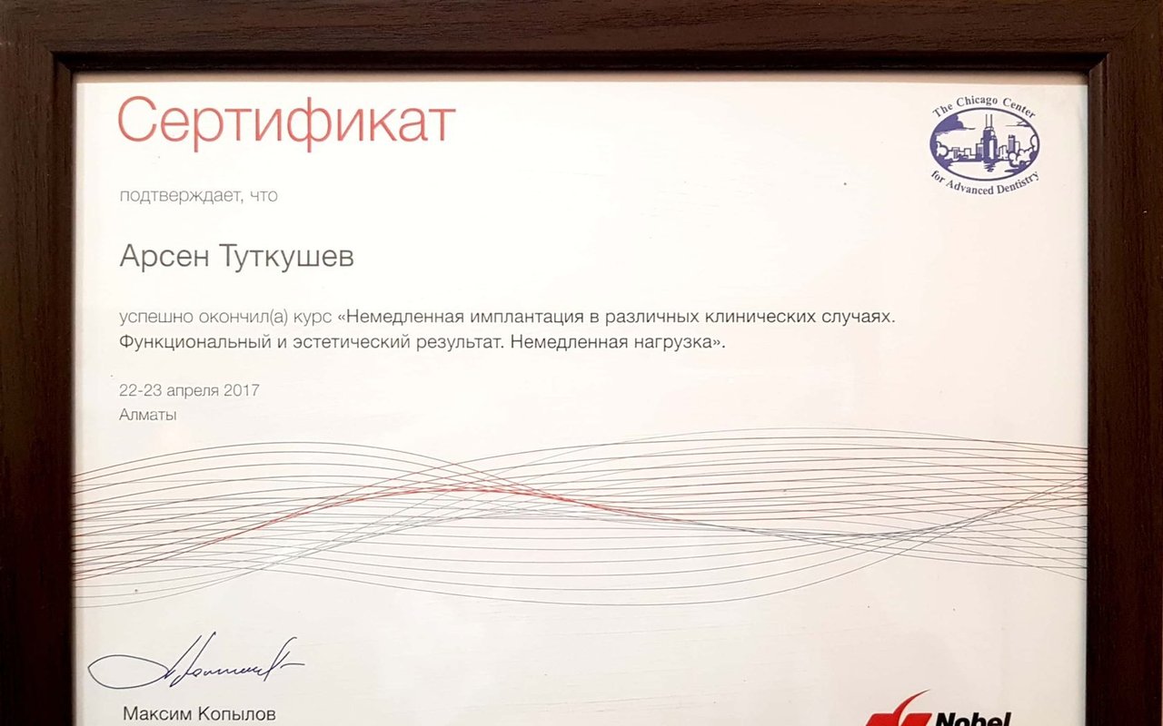 22-23 апреля 2017 года успешно окончил курс "Немедленная имплантация в различных клинических случаях. Функциональный и эстетический результат. Немедленная нагрузка."... Показать еще