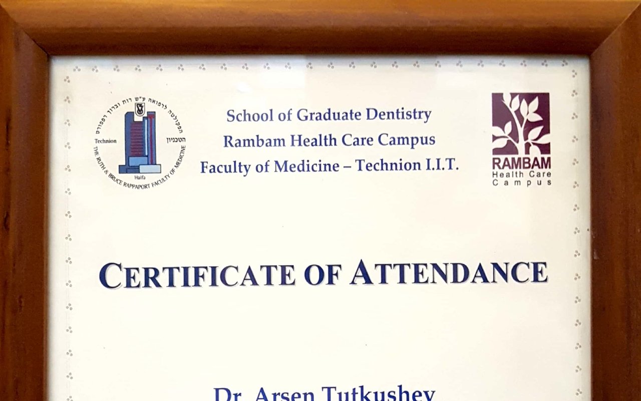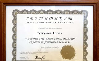 2004 — Теоретический семинар "Американ Дентал Академи" на тему "Функциональная и эстетическая реабилитация зубов с патологиями пульпы"