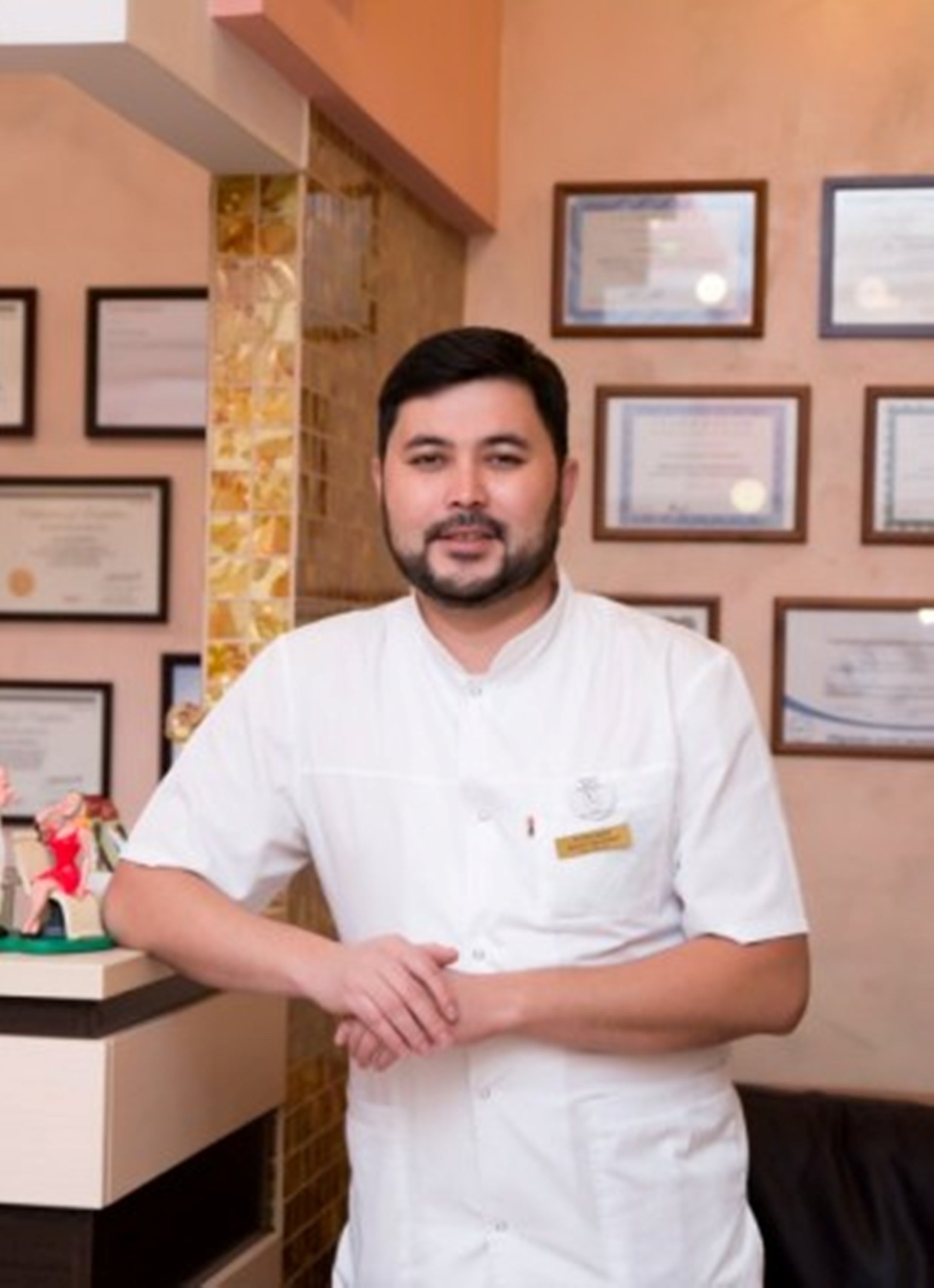2003 — Казахский национальный медицинский университет имени С. Д. Асфендиярова по специальности врач-стоматолог