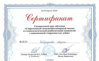 Кайдаулова Аруна Егимбаевна является ортодонтом. Аруна Кайдаулова в том числе занимается исправлением прикуса. Размышляя о визите к стоматологу-ортодонту, важно не забывать, что неправильный прикус представляет собой не просто эстетический изъян. Зубочелюстные деформации влияют на осанку, строение позвоночника и даже на работу мышц шеи. Ортодонтическая терапия длится достаточно долго, однако это всегда является существенным вложением в здоровье и качество жизни.... Показать еще